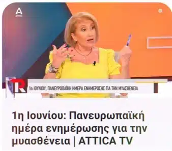 The Greek MG Association marked MG Awareness Month with a special message from the president of the Greek Association of Myasthenia, Nadias Spingou, presented on the RESTART show on the Attica TV channel. This presentation covered myasthenia, new pharmaceutical developments, the association’s activities, and events held in cooperation with European associations to inform and raise awareness for the Pan-European Day of Myasthenia.