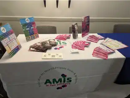 The association Amis conducted an awareness campaign on social media about myasthenia gravis (MG) and physical activity, utilizing beautiful visuals and illustrations. They also promoted MG through dedicated events.